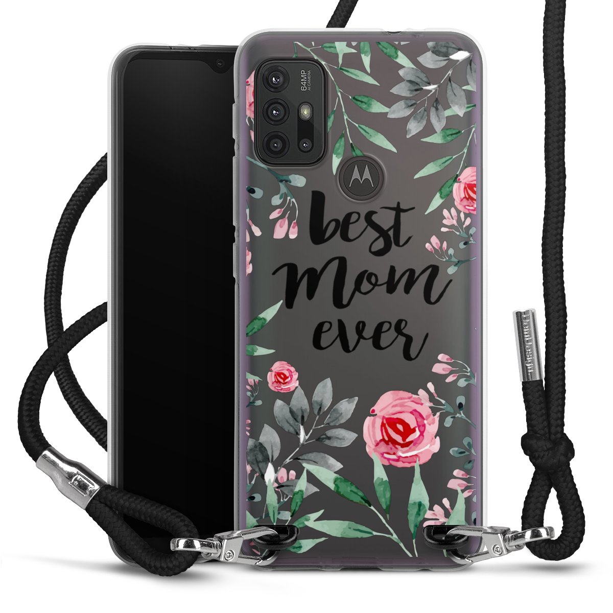 Keep your phone handy at all times, thanks to the flexible silicone case with a textile strap.