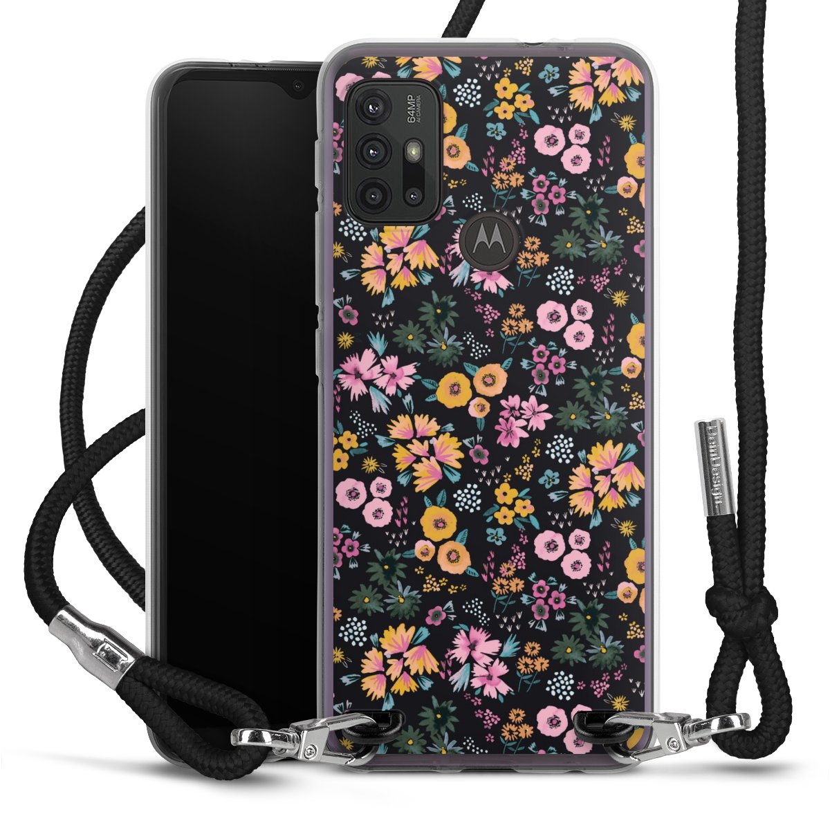 Keep your phone handy at all times, thanks to the flexible silicone case with a textile strap.