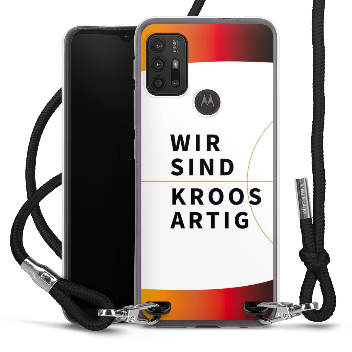 Keep your phone handy at all times, thanks to the flexible silicone case with a textile strap.