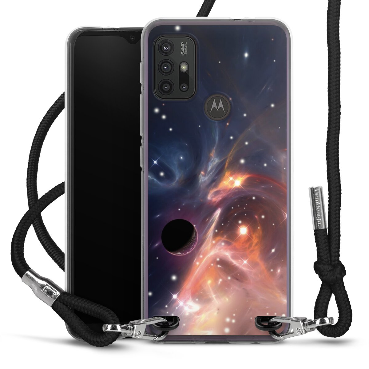 Keep your phone handy at all times, thanks to the flexible silicone case with a textile strap.