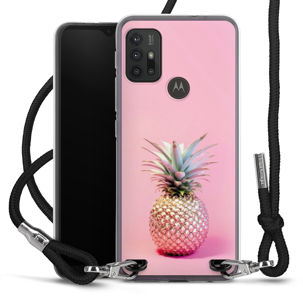 Keep your phone handy at all times, thanks to the flexible silicone case with a textile strap.