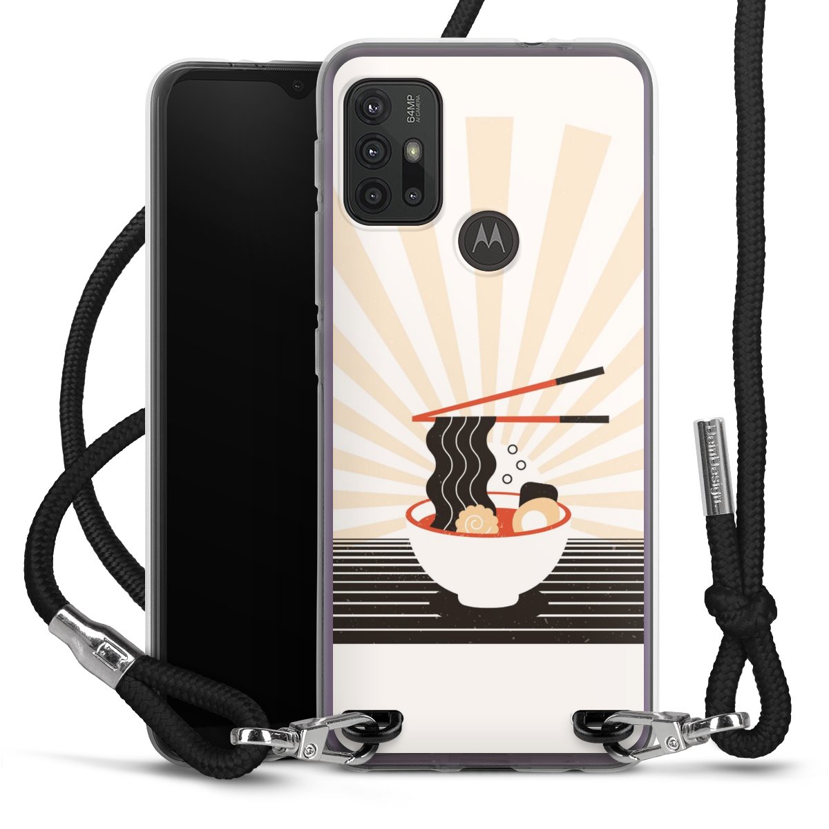 The flexible case is made from a high quality TPU material (thermoplastic Polyurethan). Thanks to its long-lasting and break resistant characteristics, the case is flexible yet consistent in form and has a great grip and feel. The textile strap made from Polyester gives a chic yet casual accent allowing you to carry your phone like a bag or necklace - a practical gadget perfect for your next adventure. The textile strap is about 1.70 meters long and the length can easily be adjusted through the knots. Our Carry Case is available in black, red, pink, grey, mustard, dark green and royal blue. We added a metal fastening to give the product an elegant touch. The ends of the textile strap are covered with metallic end caps to protect them against fraying.