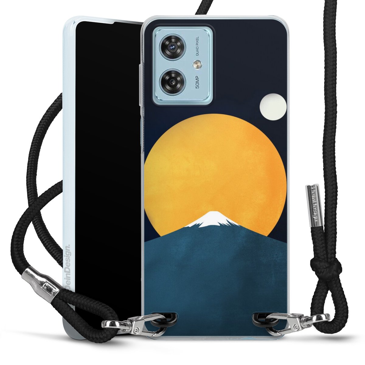 Keep your phone handy at all times, thanks to the flexible silicone case with a textile strap.