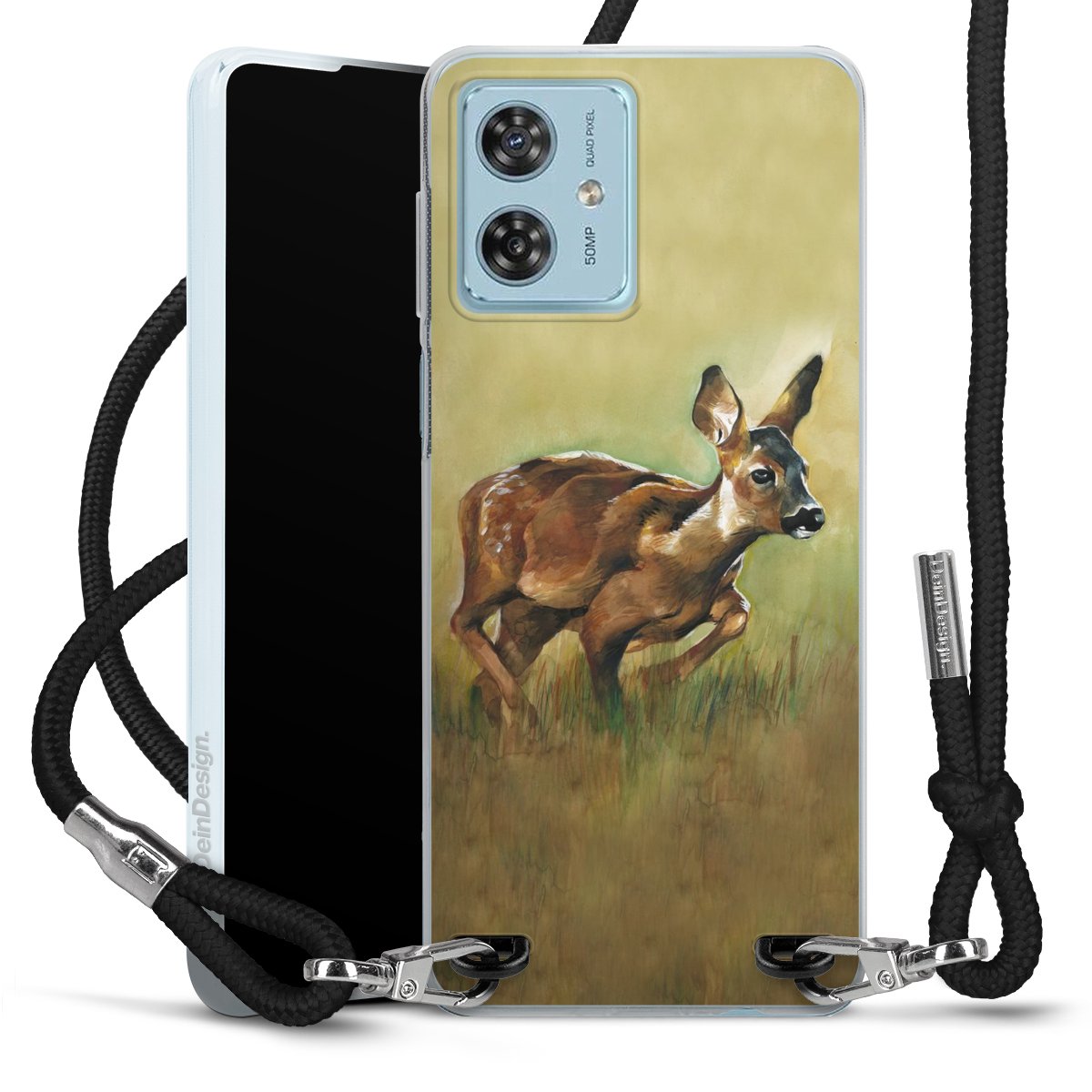Keep your phone handy at all times, thanks to the flexible silicone case with a textile strap.