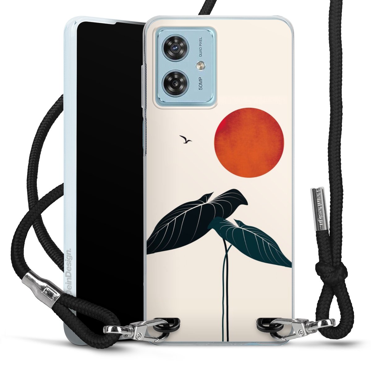 Keep your phone handy at all times, thanks to the flexible silicone case with a textile strap.