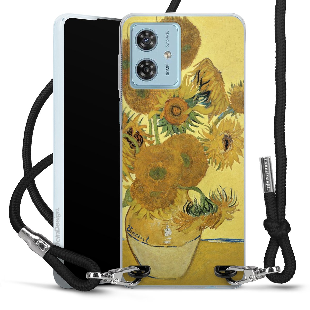 Keep your phone handy at all times, thanks to the flexible silicone case with a textile strap.