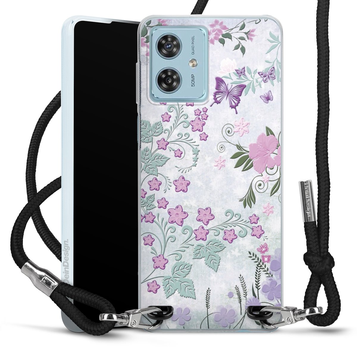 Keep your phone handy at all times, thanks to the flexible silicone case with a textile strap.