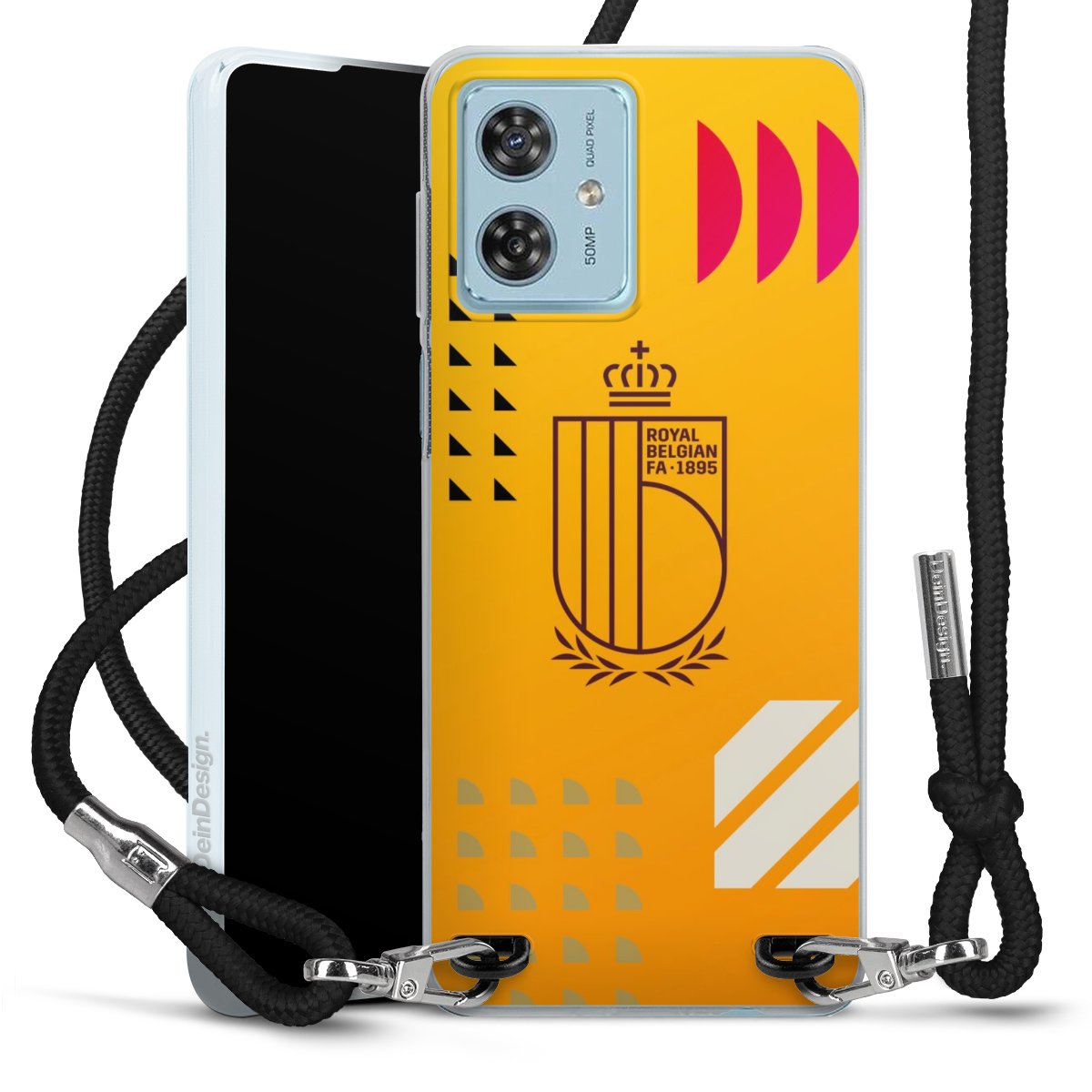 Keep your phone handy at all times, thanks to the flexible silicone case with a textile strap.