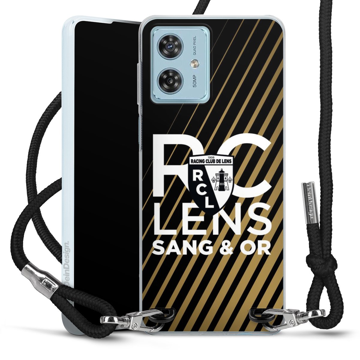 Keep your phone handy at all times, thanks to the flexible silicone case with a textile strap.