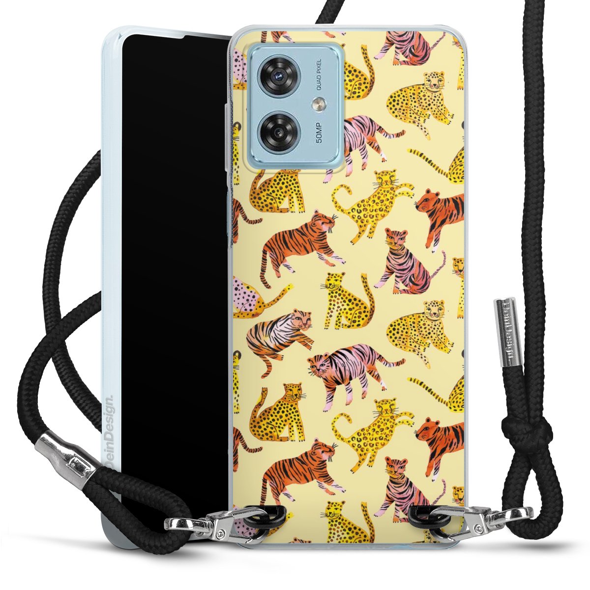 Keep your phone handy at all times, thanks to the flexible silicone case with a textile strap.