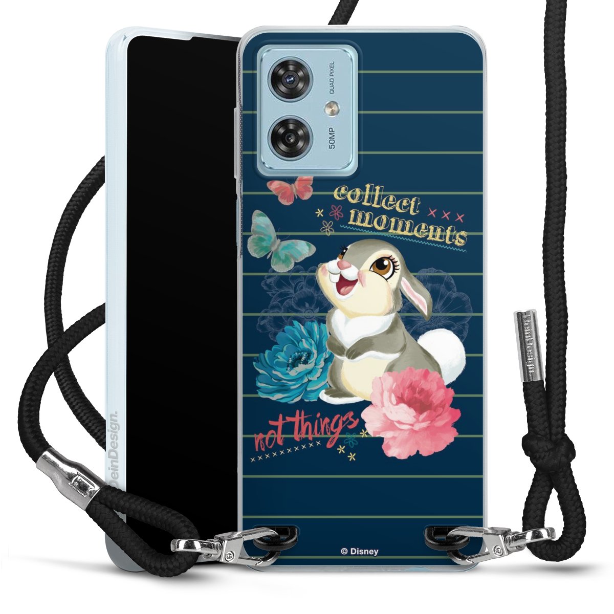 Keep your phone handy at all times, thanks to the flexible silicone case with a textile strap.