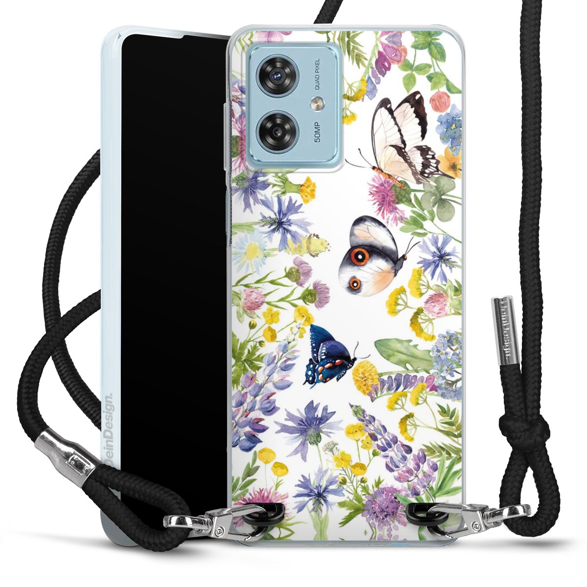 Keep your phone handy at all times, thanks to the flexible silicone case with a textile strap.