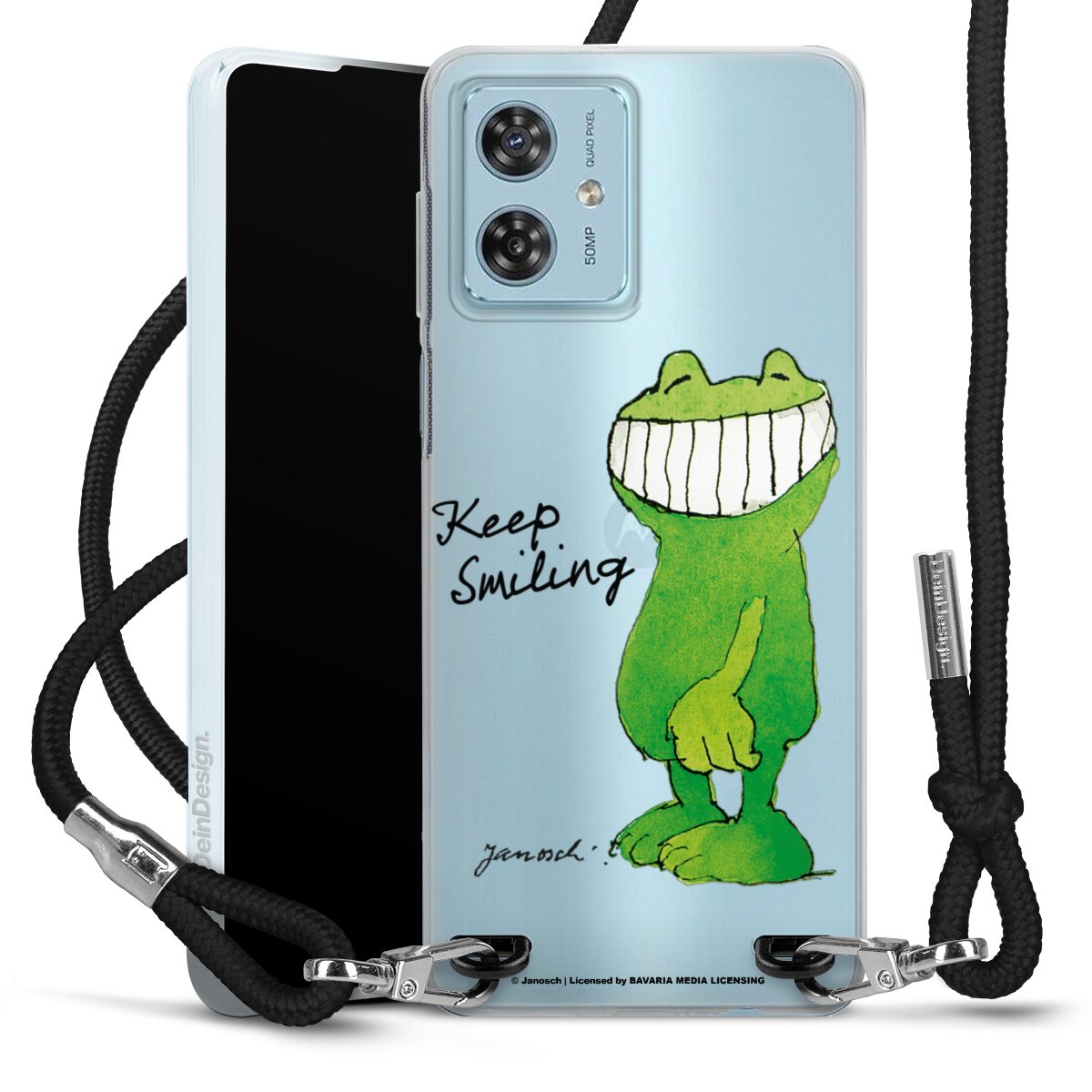 Keep your phone handy at all times, thanks to the flexible silicone case with a textile strap.