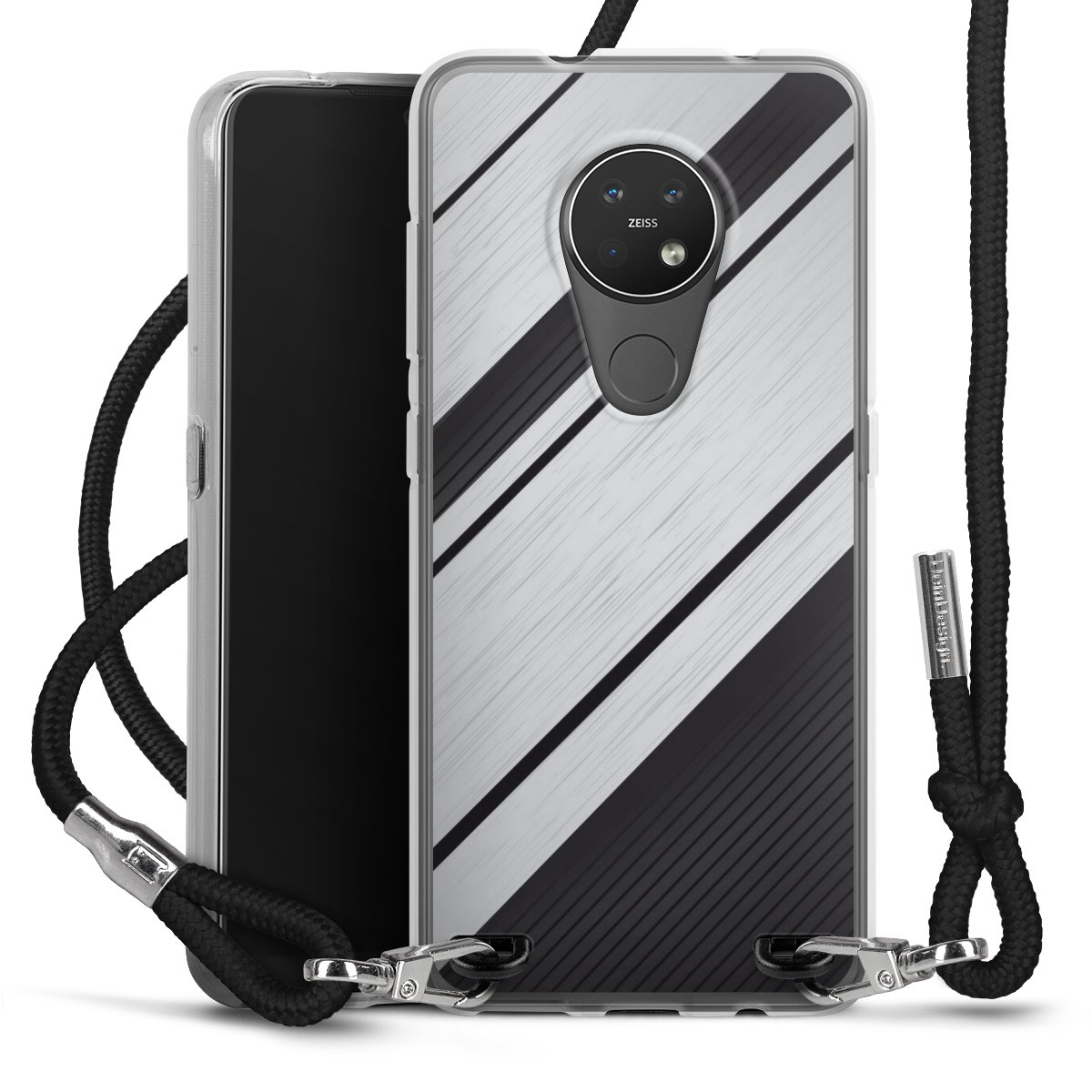 The flexible case is made from a high quality TPU material (thermoplastic Polyurethan). Thanks to its long-lasting and break resistant characteristics, the case is flexible yet consistent in form and has a great grip and feel. The textile strap made from Polyester gives a chic yet casual accent allowing you to carry your phone like a bag or necklace - a practical gadget perfect for your next adventure. The textile strap is about 1.70 meters long and the length can easily be adjusted through the knots. Our Carry Case is available in black, red, pink, grey, mustard, dark green and royal blue. We added a metal fastening to give the product an elegant touch. The ends of the textile strap are covered with metallic end caps to protect them against fraying.