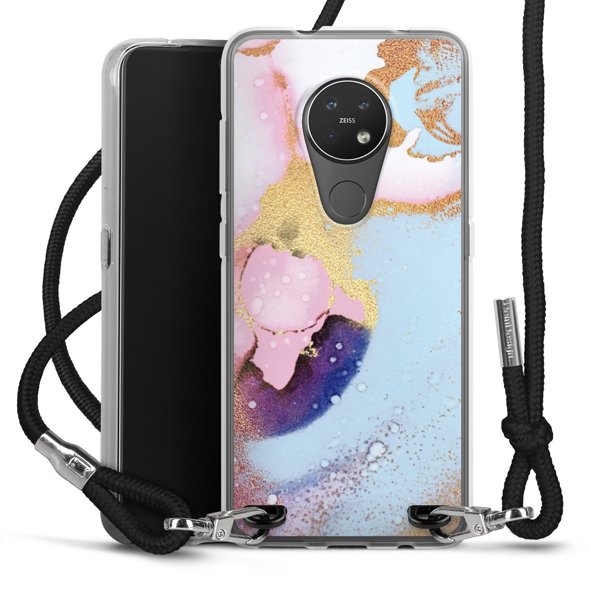 The flexible case is made from a high quality TPU material (thermoplastic Polyurethan). Thanks to its long-lasting and break resistant characteristics, the case is flexible yet consistent in form and has a great grip and feel. The textile strap made from Polyester gives a chic yet casual accent allowing you to carry your phone like a bag or necklace - a practical gadget perfect for your next adventure. The textile strap is about 1.70 meters long and the length can easily be adjusted through the knots. Our Carry Case is available in black, red, pink, grey, mustard, dark green and royal blue. We added a metal fastening to give the product an elegant touch. The ends of the textile strap are covered with metallic end caps to protect them against fraying.