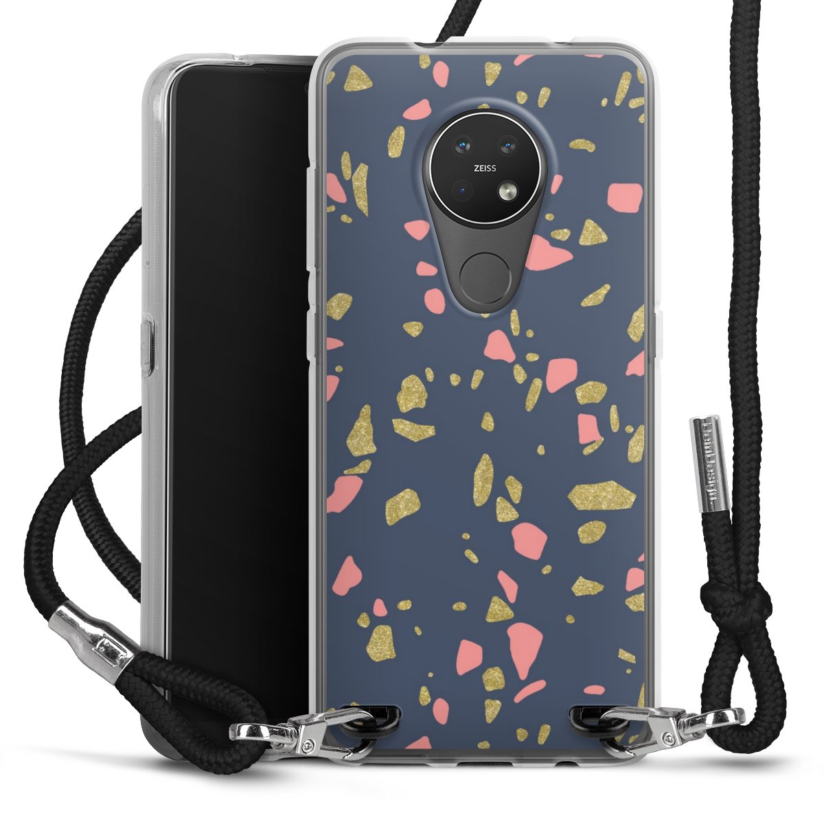 The flexible case is made from a high quality TPU material (thermoplastic Polyurethan). Thanks to its long-lasting and break resistant characteristics, the case is flexible yet consistent in form and has a great grip and feel. The textile strap made from Polyester gives a chic yet casual accent allowing you to carry your phone like a bag or necklace - a practical gadget perfect for your next adventure. The textile strap is about 1.70 meters long and the length can easily be adjusted through the knots. Our Carry Case is available in black, red, pink, grey, mustard, dark green and royal blue. We added a metal fastening to give the product an elegant touch. The ends of the textile strap are covered with metallic end caps to protect them against fraying.