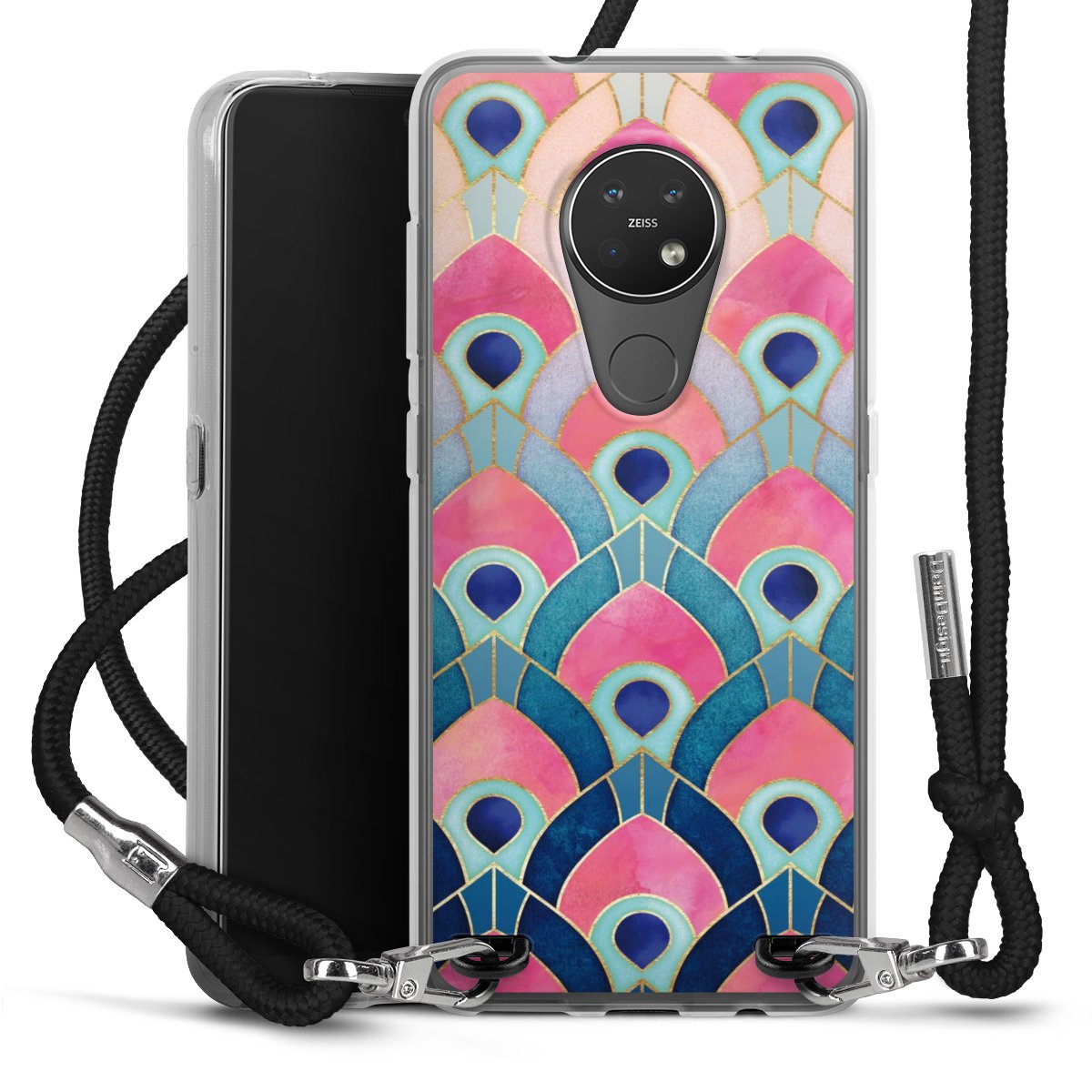 The flexible case is made from a high quality TPU material (thermoplastic Polyurethan). Thanks to its long-lasting and break resistant characteristics, the case is flexible yet consistent in form and has a great grip and feel. The textile strap made from Polyester gives a chic yet casual accent allowing you to carry your phone like a bag or necklace - a practical gadget perfect for your next adventure. The textile strap is about 1.70 meters long and the length can easily be adjusted through the knots. Our Carry Case is available in black, red, pink, grey, mustard, dark green and royal blue. We added a metal fastening to give the product an elegant touch. The ends of the textile strap are covered with metallic end caps to protect them against fraying.