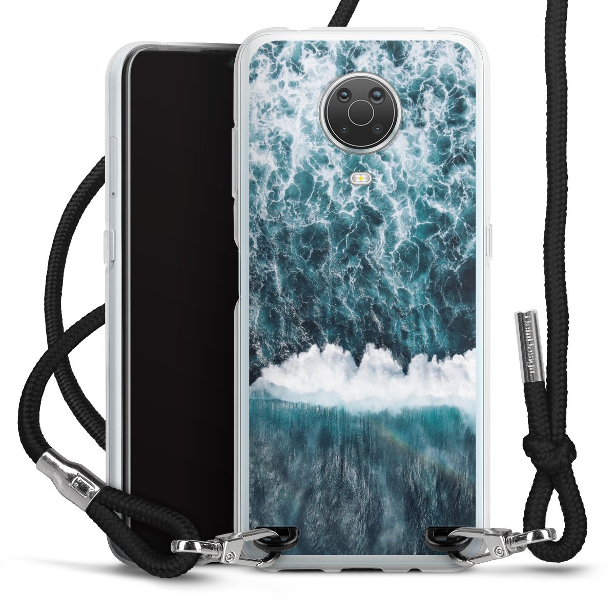 Keep your phone handy at all times, thanks to the flexible silicone case with a textile strap.