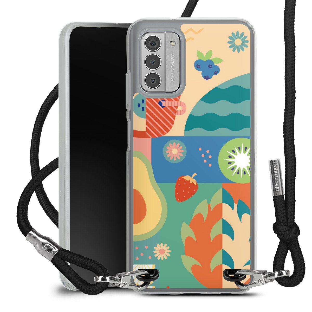 Keep your phone handy at all times, thanks to the flexible silicone case with a textile strap.