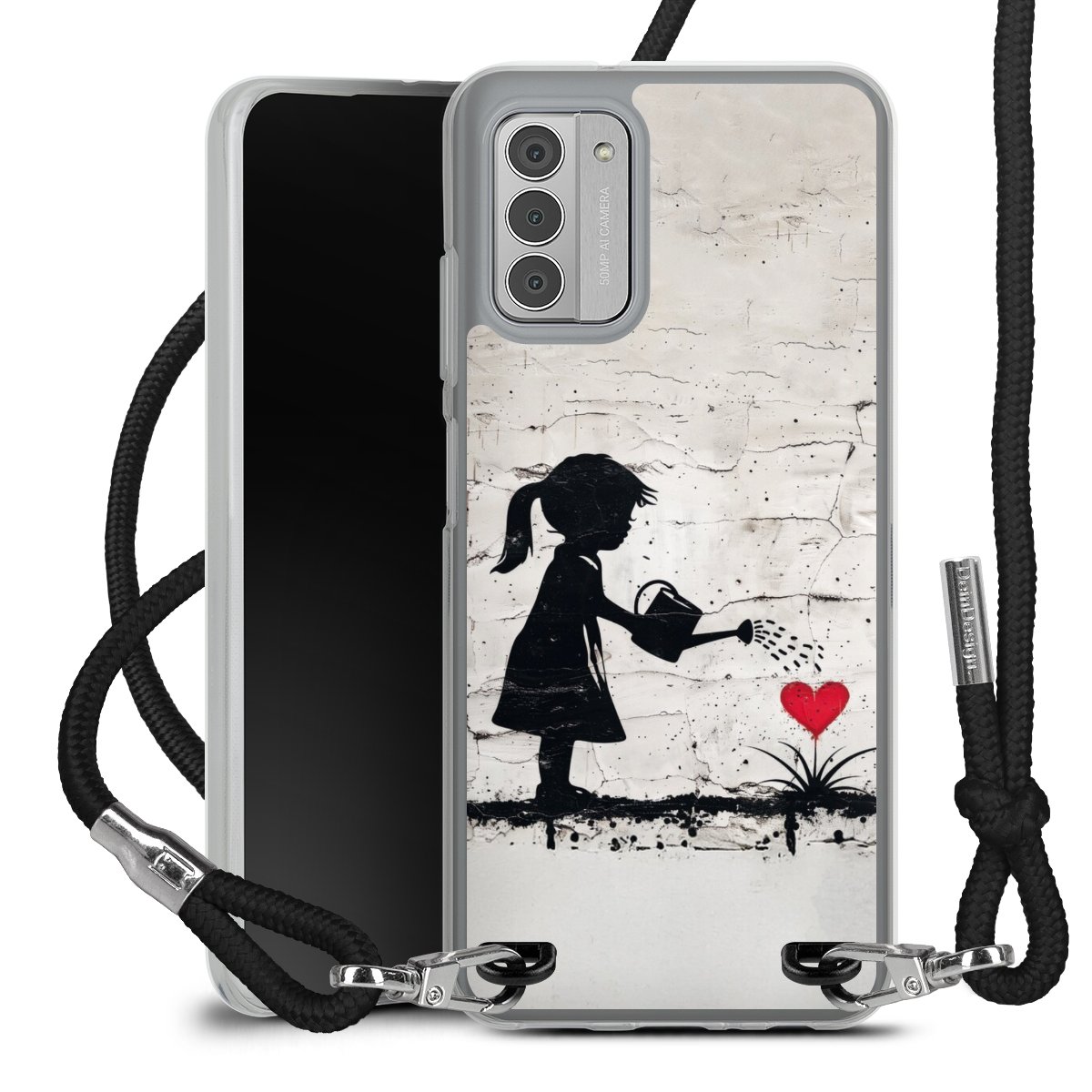 Keep your phone handy at all times, thanks to the flexible silicone case with a textile strap.