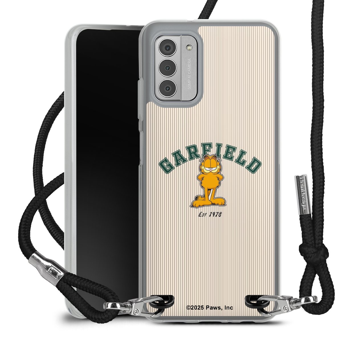 Keep your phone handy at all times, thanks to the flexible silicone case with a textile strap.