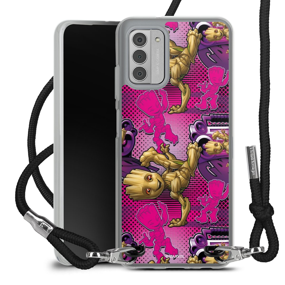 Keep your phone handy at all times, thanks to the flexible silicone case with a textile strap.