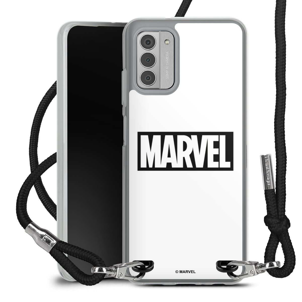 Keep your phone handy at all times, thanks to the flexible silicone case with a textile strap.