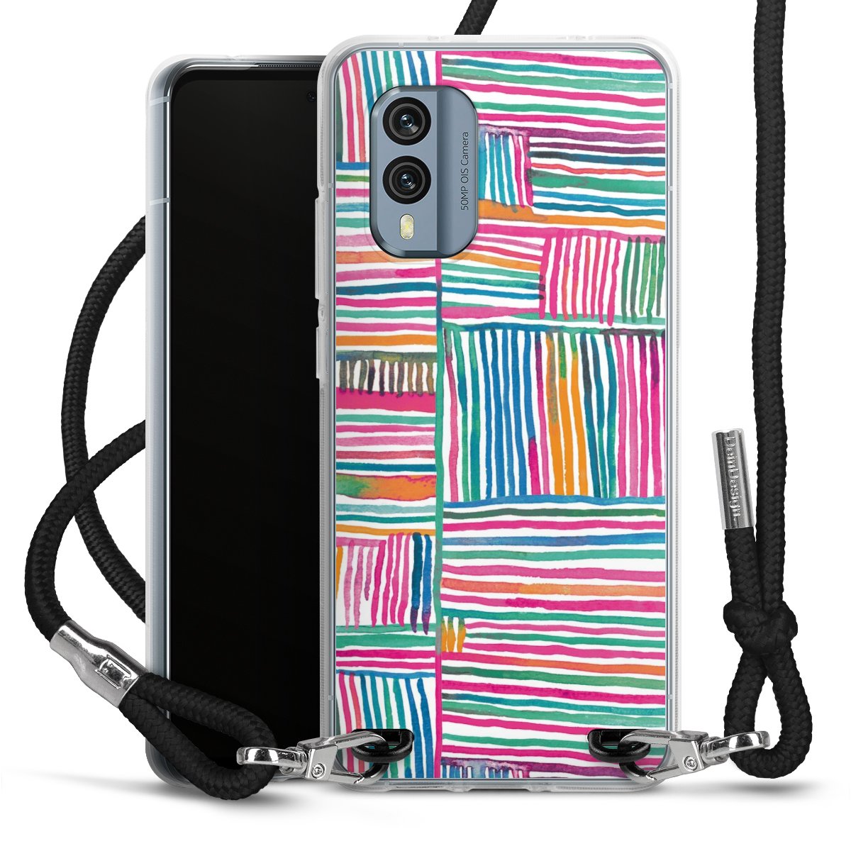 The flexible case is made from a high quality TPU material (thermoplastic Polyurethan). Thanks to its long-lasting and break resistant characteristics, the case is flexible yet consistent in form and has a great grip and feel. The textile strap made from Polyester gives a chic yet casual accent allowing you to carry your phone like a bag or necklace - a practical gadget perfect for your next adventure. The textile strap is about 1.70 meters long and the length can easily be adjusted through the knots. Our Carry Case is available in black, red, pink, grey, mustard, dark green and royal blue. We added a metal fastening to give the product an elegant touch. The ends of the textile strap are covered with metallic end caps to protect them against fraying.