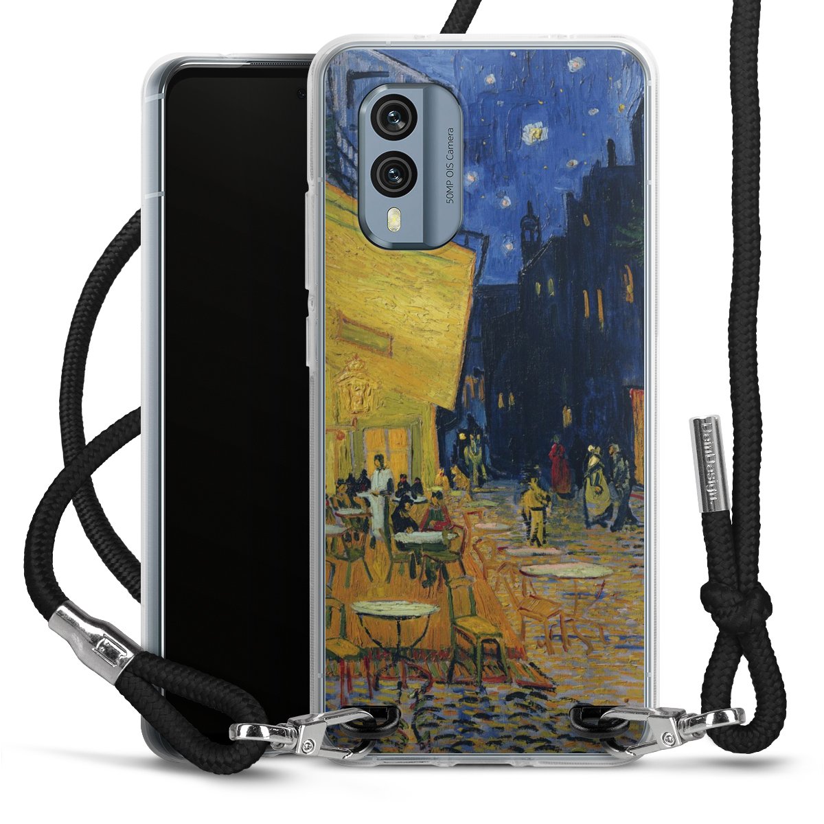 Keep your phone handy at all times, thanks to the flexible silicone case with a textile strap.