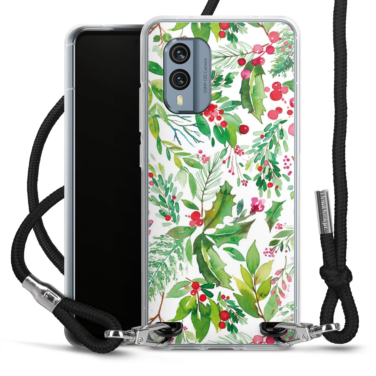 Keep your phone handy at all times, thanks to the flexible silicone case with a textile strap.