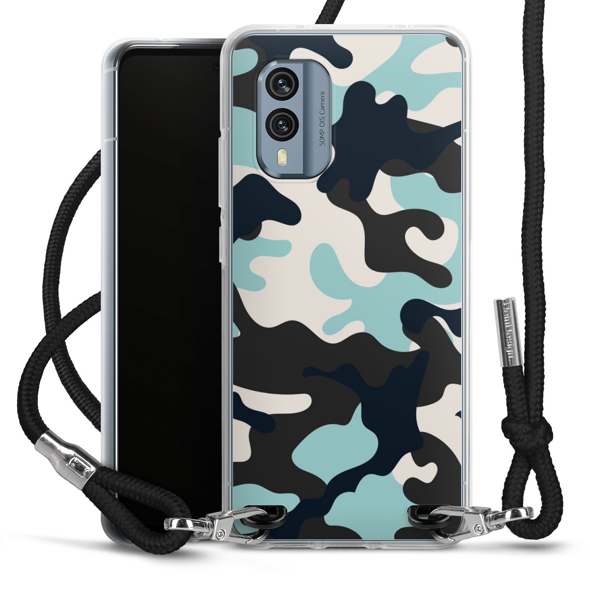 Keep your phone handy at all times, thanks to the flexible silicone case with a textile strap.