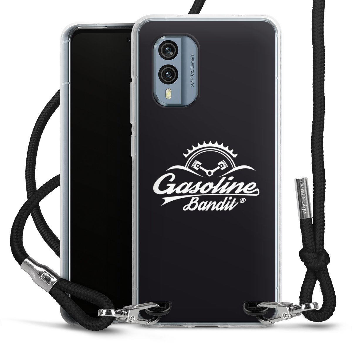 Keep your phone handy at all times, thanks to the flexible silicone case with a textile strap.