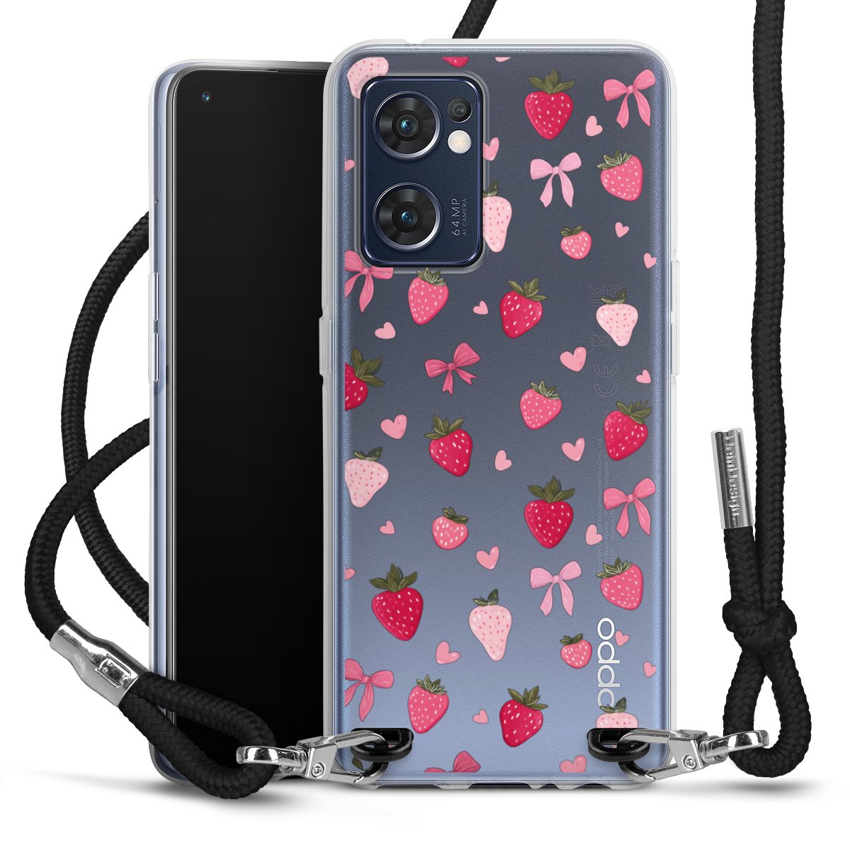 Strawberry Ribbon Pattern Pink Transparent