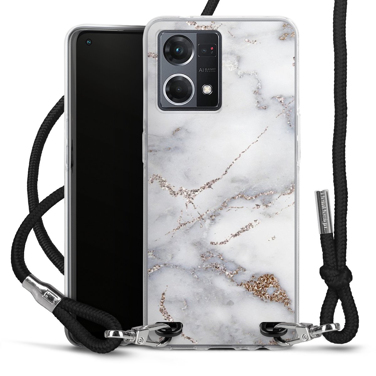 Keep your phone handy at all times, thanks to the flexible silicone case with a textile strap.