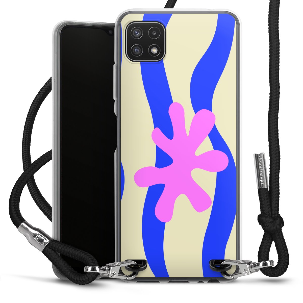 Keep your phone handy at all times, thanks to the flexible silicone case with a textile strap.