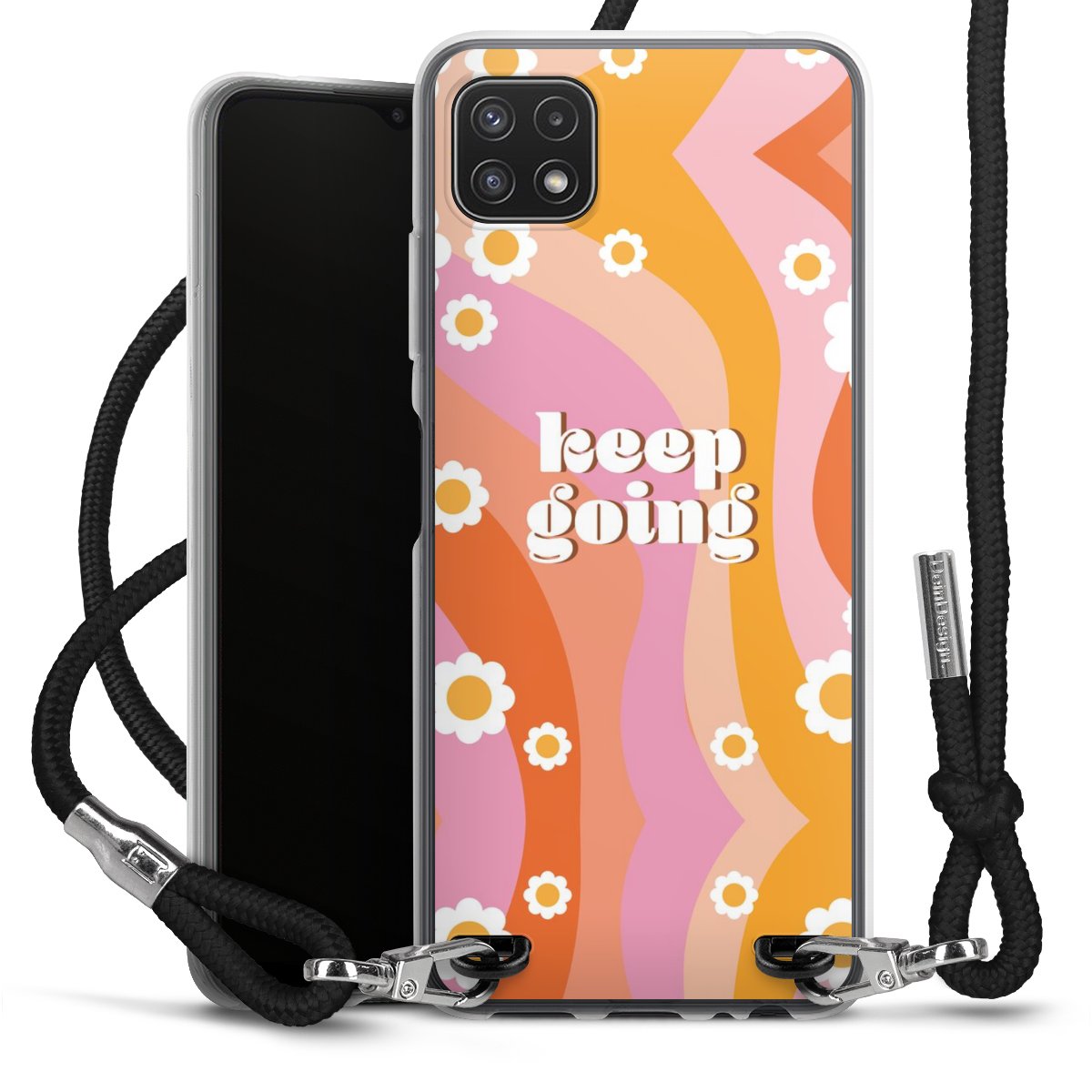Keep your phone handy at all times, thanks to the flexible silicone case with a textile strap.