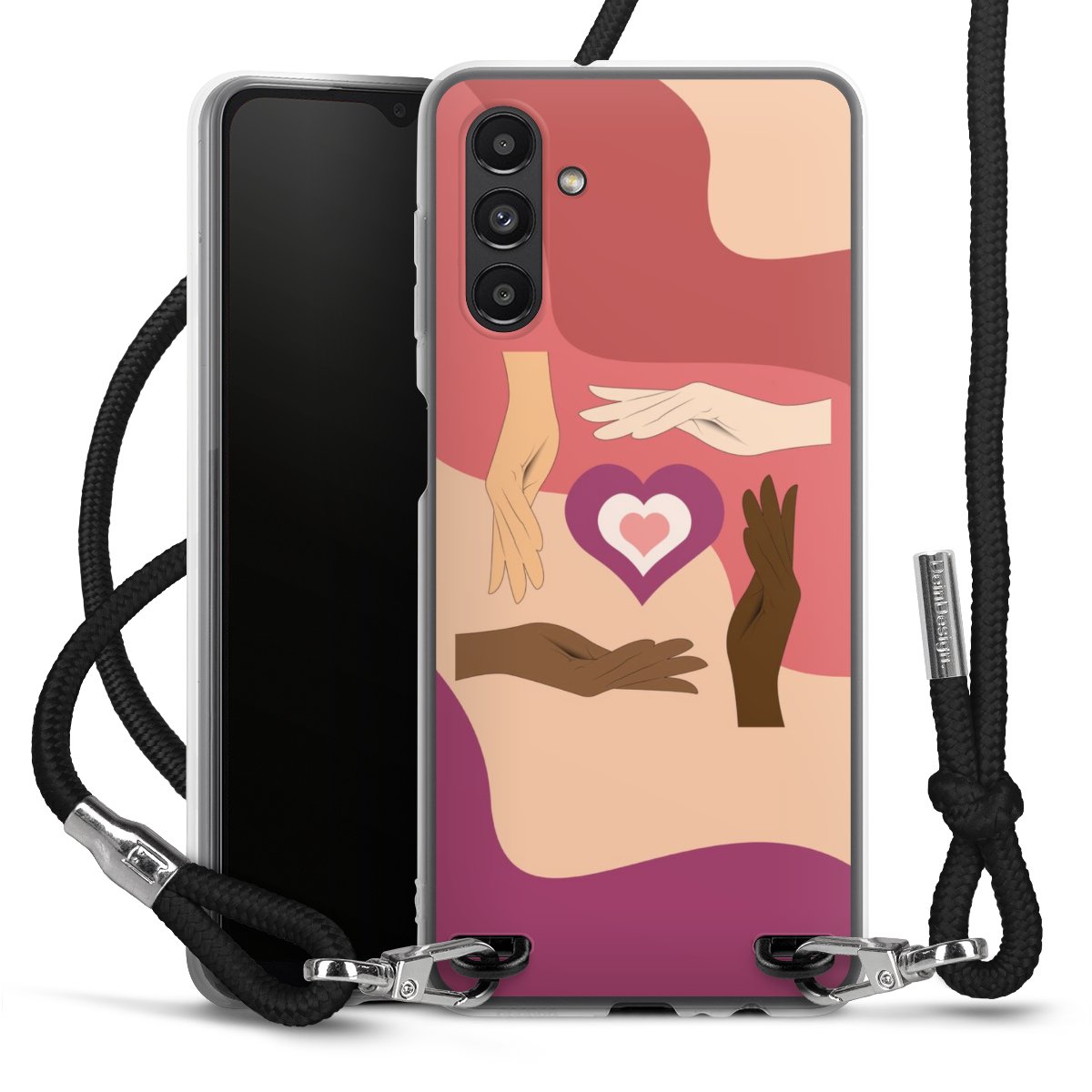 Keep your phone handy at all times, thanks to the flexible silicone case with a textile strap.