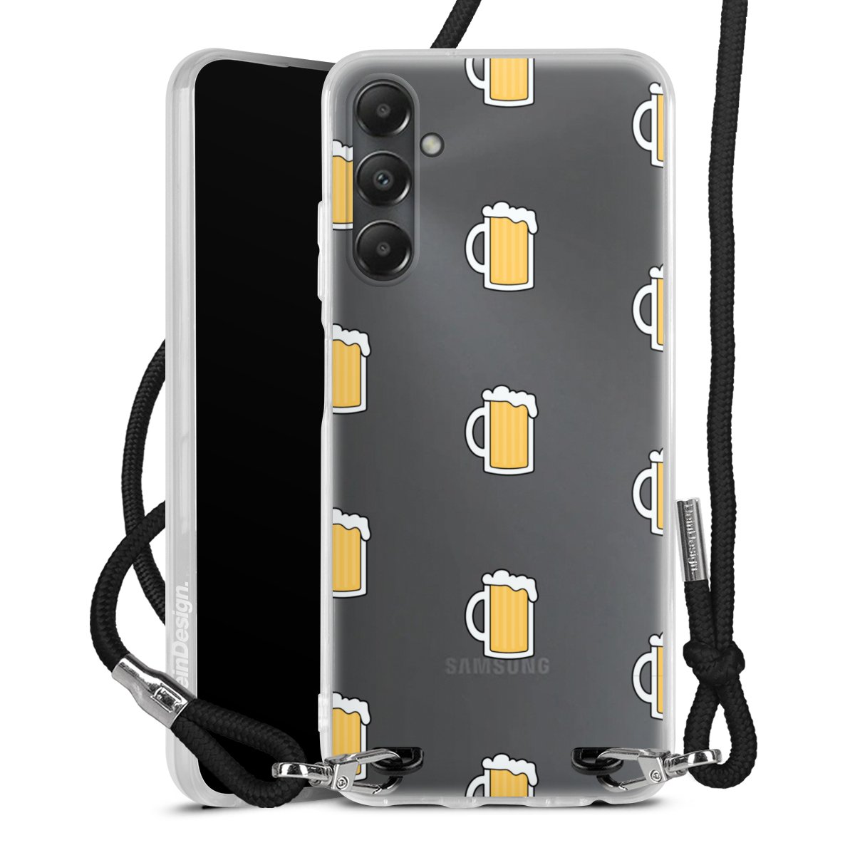 For our Carry Case we are using our advanced direct printing technology. The backside is fully printable, the frame is left unprinted. You can order the phone case without print, printed completely or also with a partial print. Choose one of our exclusive, pre-made shop designs or let your creativity shine and create your very own unique design with your pictures, overlays and text.