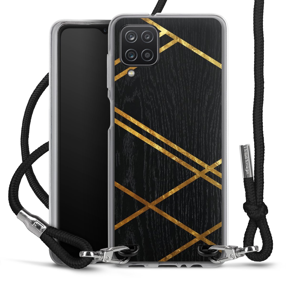 Black Geometric Pattern Golden Stripes