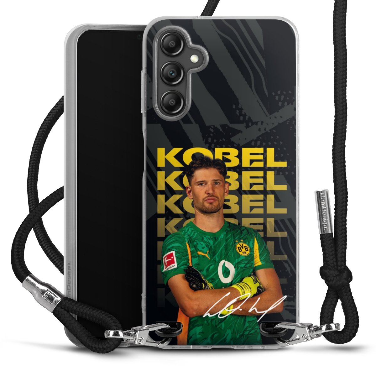 Keep your phone handy at all times, thanks to the flexible silicone case with a textile strap.