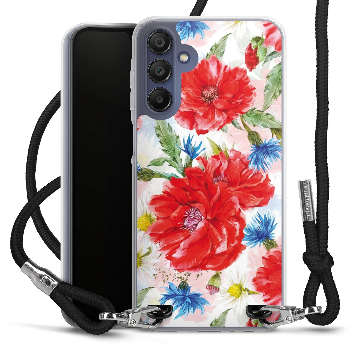 Keep your phone handy at all times, thanks to the flexible silicone case with a textile strap.