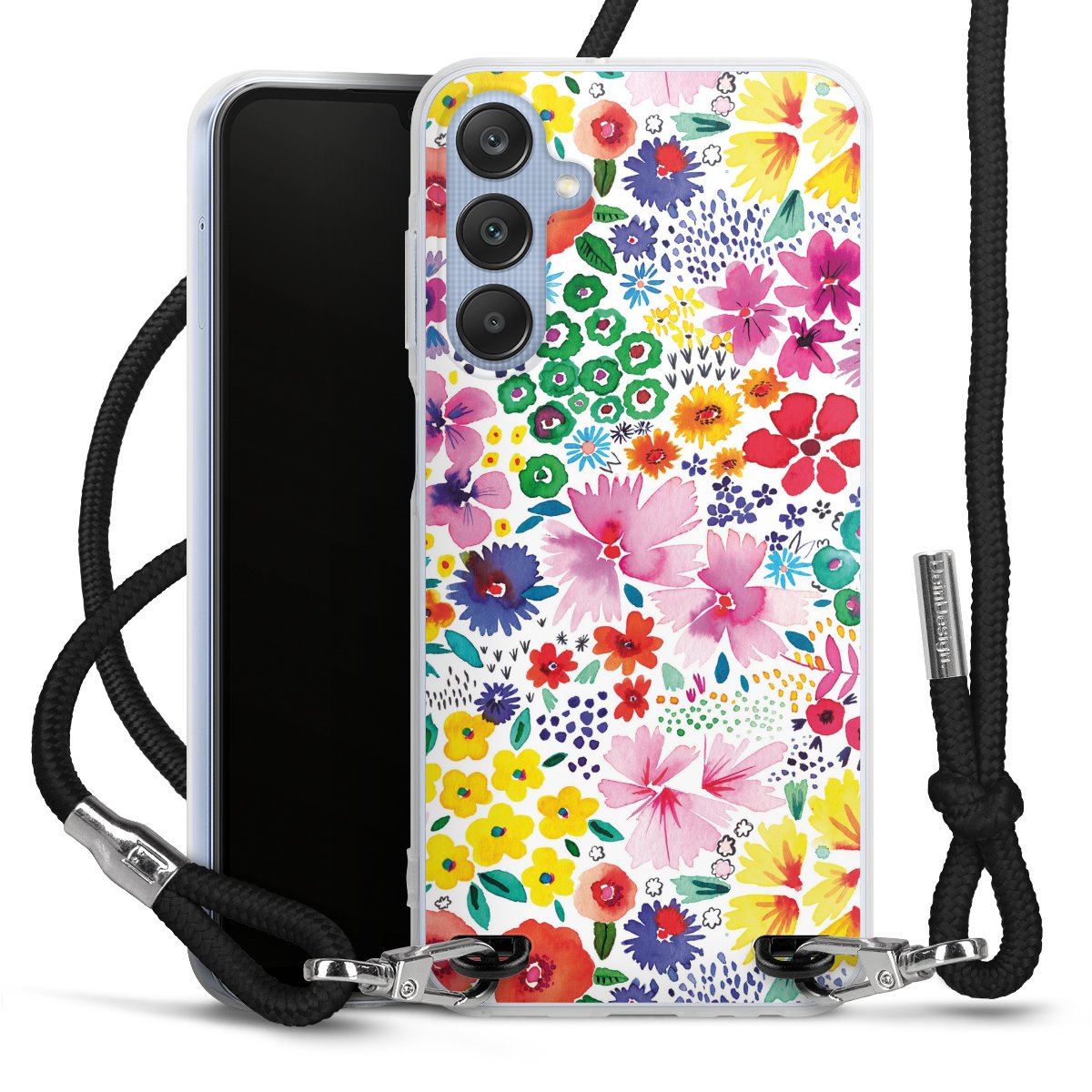 Keep your phone handy at all times, thanks to the flexible silicone case with a textile strap.