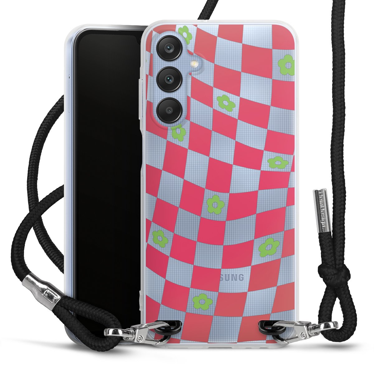 The flexible case is made from a high quality TPU material (thermoplastic Polyurethan). Thanks to its long-lasting and break resistant characteristics, the case is flexible yet consistent in form and has a great grip and feel. The textile strap made from Polyester gives a chic yet casual accent allowing you to carry your phone like a bag or necklace - a practical gadget perfect for your next adventure. The textile strap is about 1.70 meters long and the length can easily be adjusted through the knots. Our Carry Case is available in black, red, pink, grey, mustard, dark green and royal blue. We added a metal fastening to give the product an elegant touch. The ends of the textile strap are covered with metallic end caps to protect them against fraying.