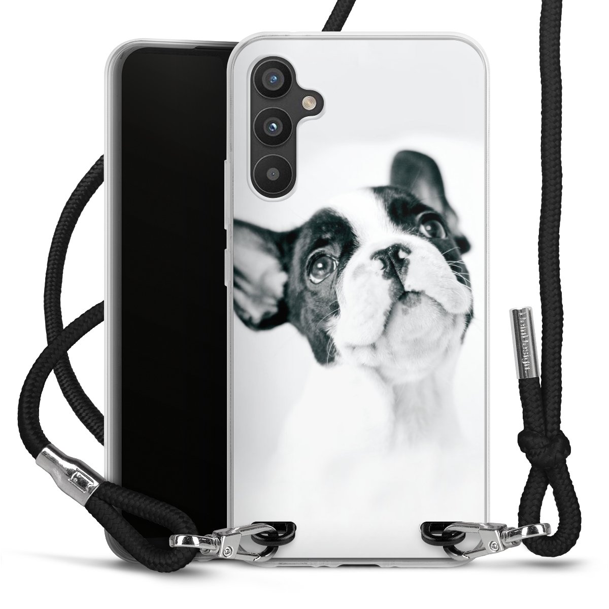 For our Carry Case we are using our advanced direct printing technology. The backside is fully printable, the frame is left unprinted. You can order the phone case without print, printed completely or also with a partial print. Choose one of our exclusive, pre-made shop designs or let your creativity shine and create your very own unique design with your pictures, overlays and text.