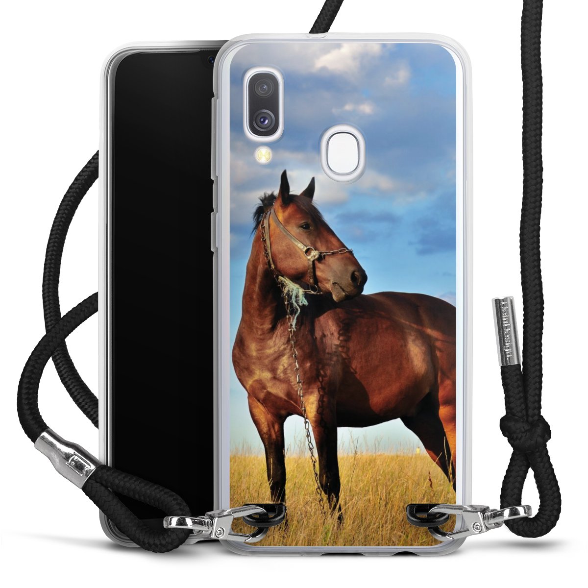 The flexible case is made from a high quality TPU material (thermoplastic Polyurethan). Thanks to its long-lasting and break resistant characteristics, the case is flexible yet consistent in form and has a great grip and feel. The textile strap made from Polyester gives a chic yet casual accent allowing you to carry your phone like a bag or necklace - a practical gadget perfect for your next adventure. The textile strap is about 1.70 meters long and the length can easily be adjusted through the knots. Our Carry Case is available in black, red, pink, grey, mustard, dark green and royal blue. We added a metal fastening to give the product an elegant touch. The ends of the textile strap are covered with metallic end caps to protect them against fraying.