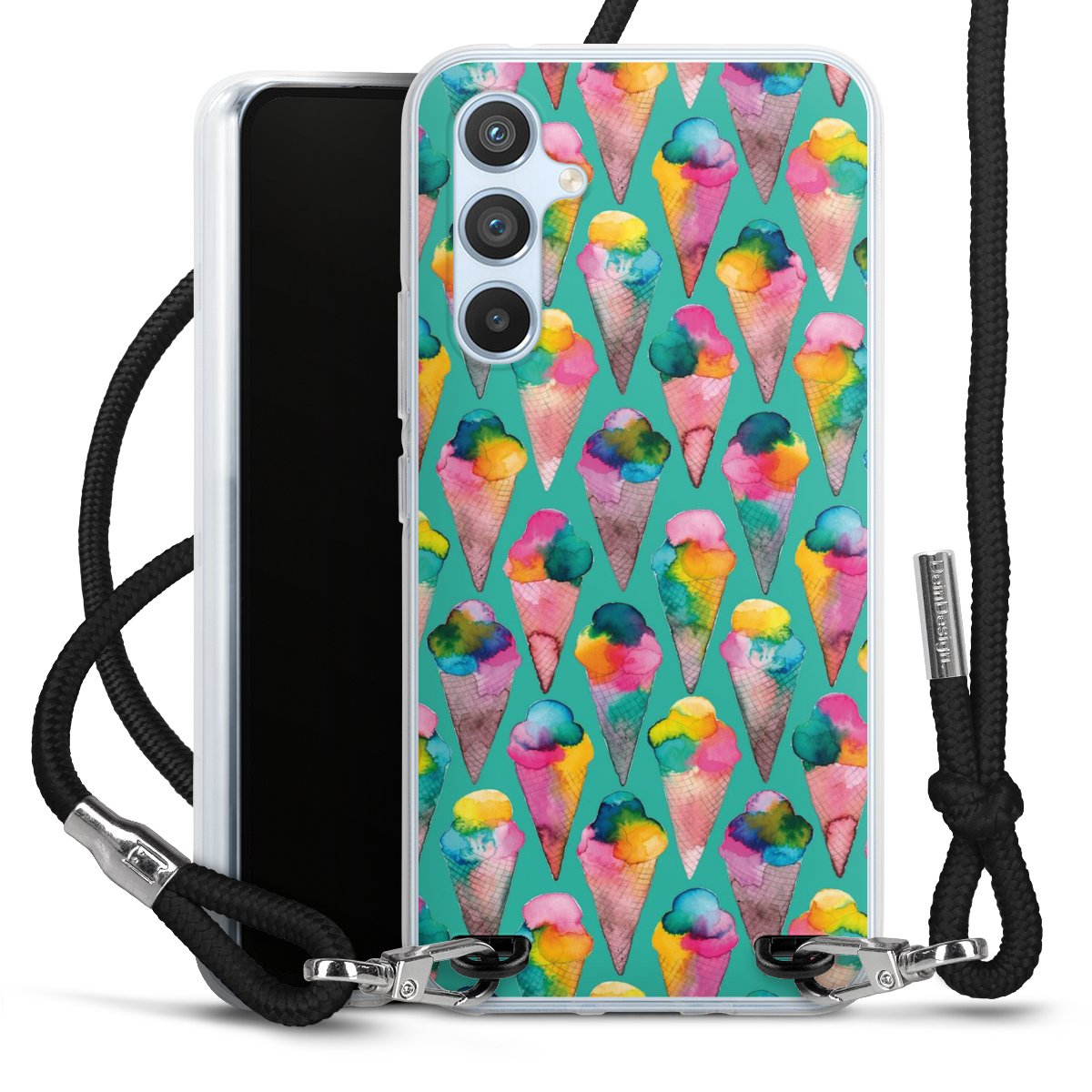Keep your phone handy at all times, thanks to the flexible silicone case with a textile strap.