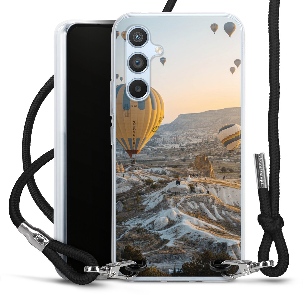 The flexible case is made from a high quality TPU material (thermoplastic Polyurethan). Thanks to its long-lasting and break resistant characteristics, the case is flexible yet consistent in form and has a great grip and feel. The textile strap made from Polyester gives a chic yet casual accent allowing you to carry your phone like a bag or necklace - a practical gadget perfect for your next adventure. The textile strap is about 1.70 meters long and the length can easily be adjusted through the knots. Our Carry Case is available in black, red, pink, grey, mustard, dark green and royal blue. We added a metal fastening to give the product an elegant touch. The ends of the textile strap are covered with metallic end caps to protect them against fraying.