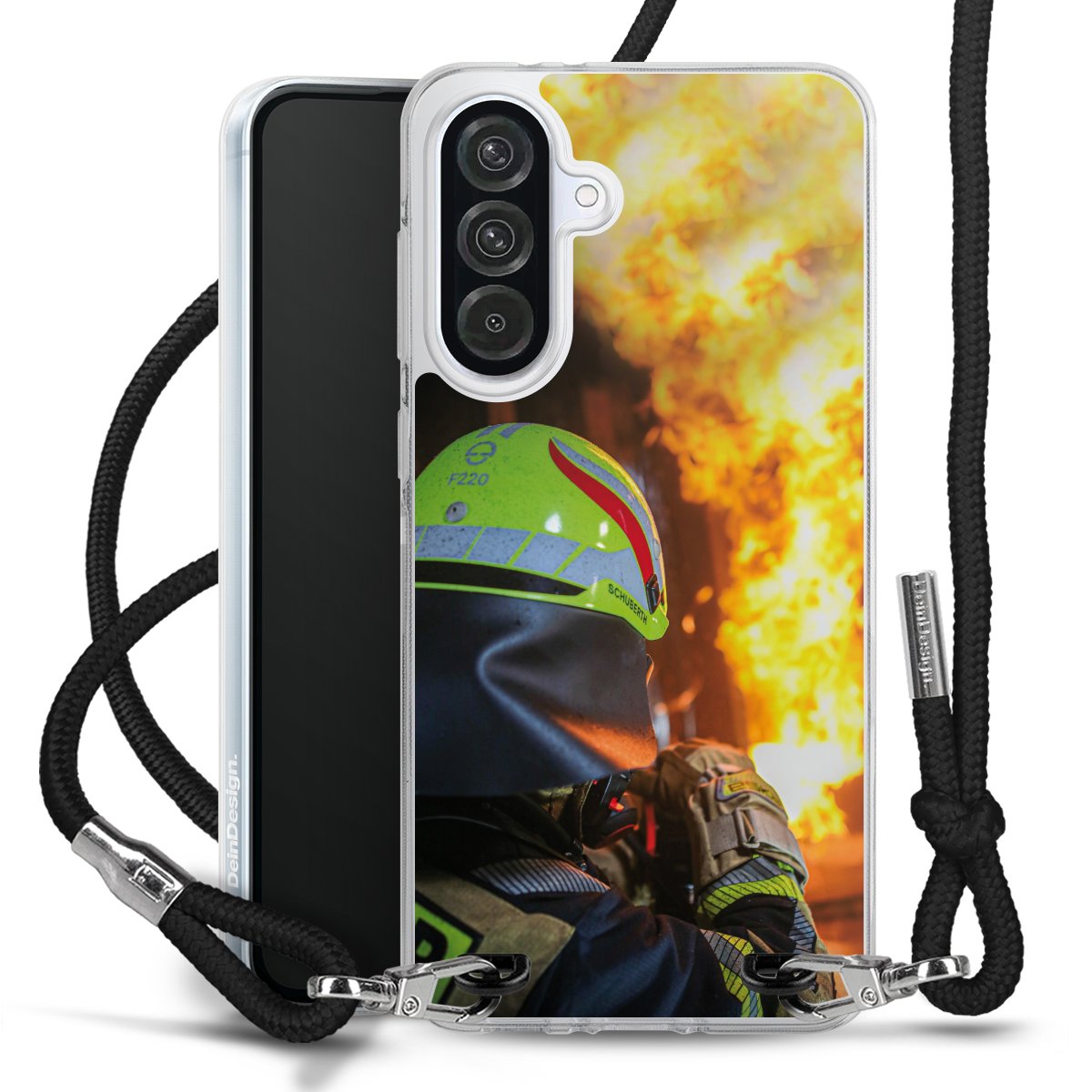Keep your phone handy at all times, thanks to the flexible silicone case with a textile strap.