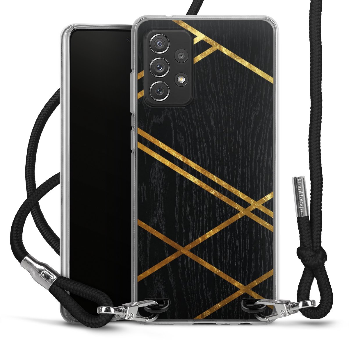 Black Geometric Pattern Golden Stripes