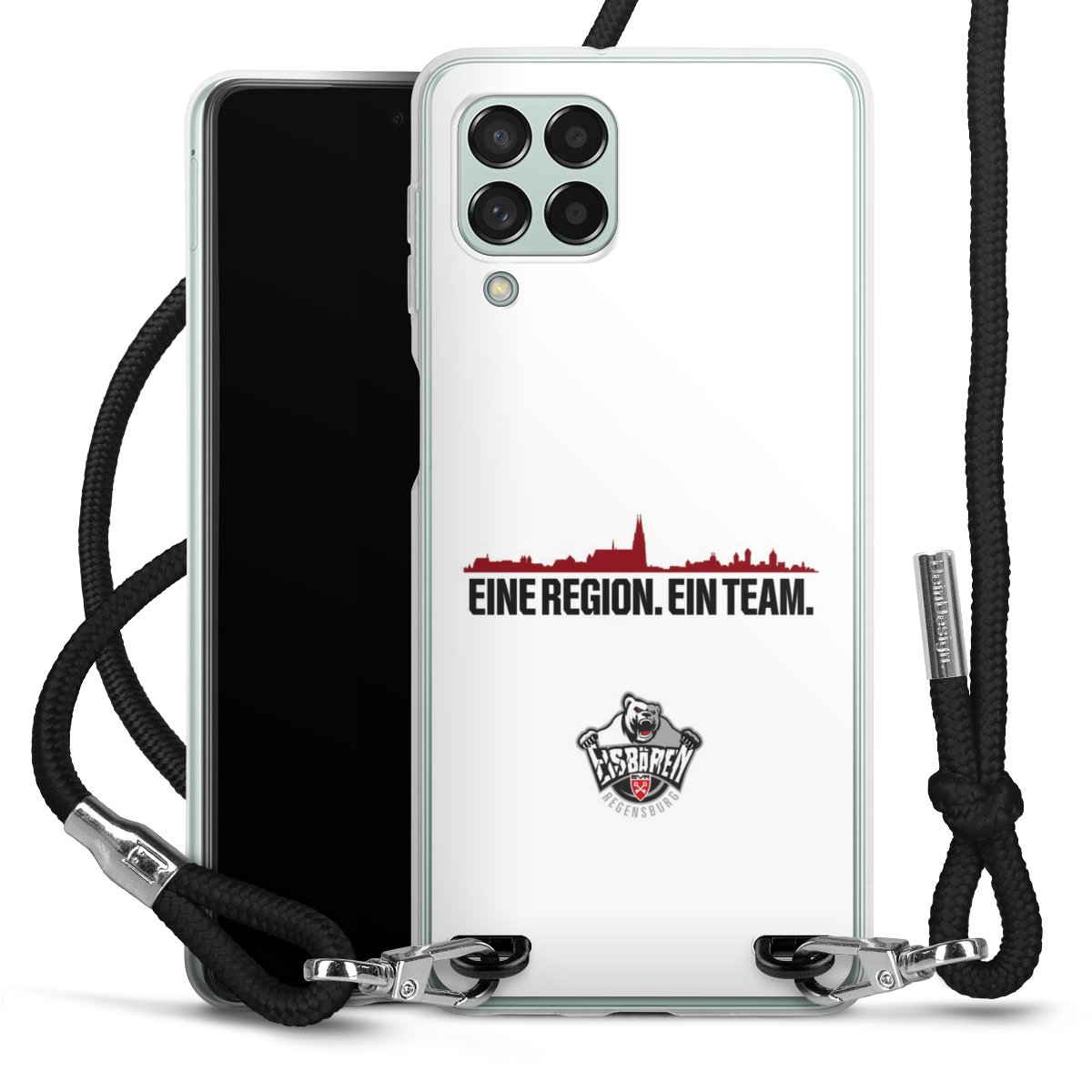 Keep your phone handy at all times, thanks to the flexible silicone case with a textile strap.
